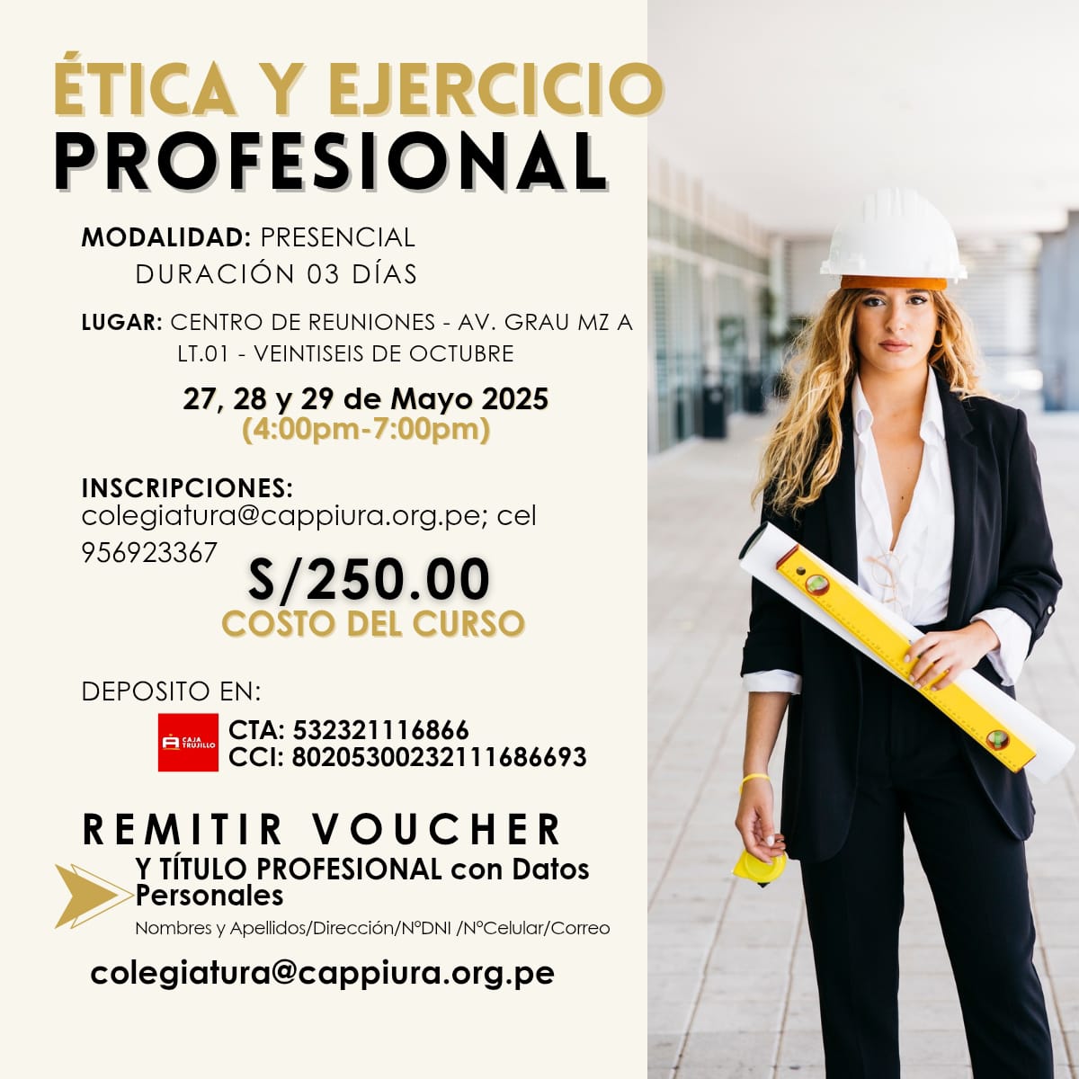 EL CURSO DE ÉTICA Y EJERCICIO PROFESIONAL, va dirigido a todo arquitecto con título profesional avalado por una universidad Peruana pública o privada; o Universidad extranjera con reconocimiento oficial por su País.