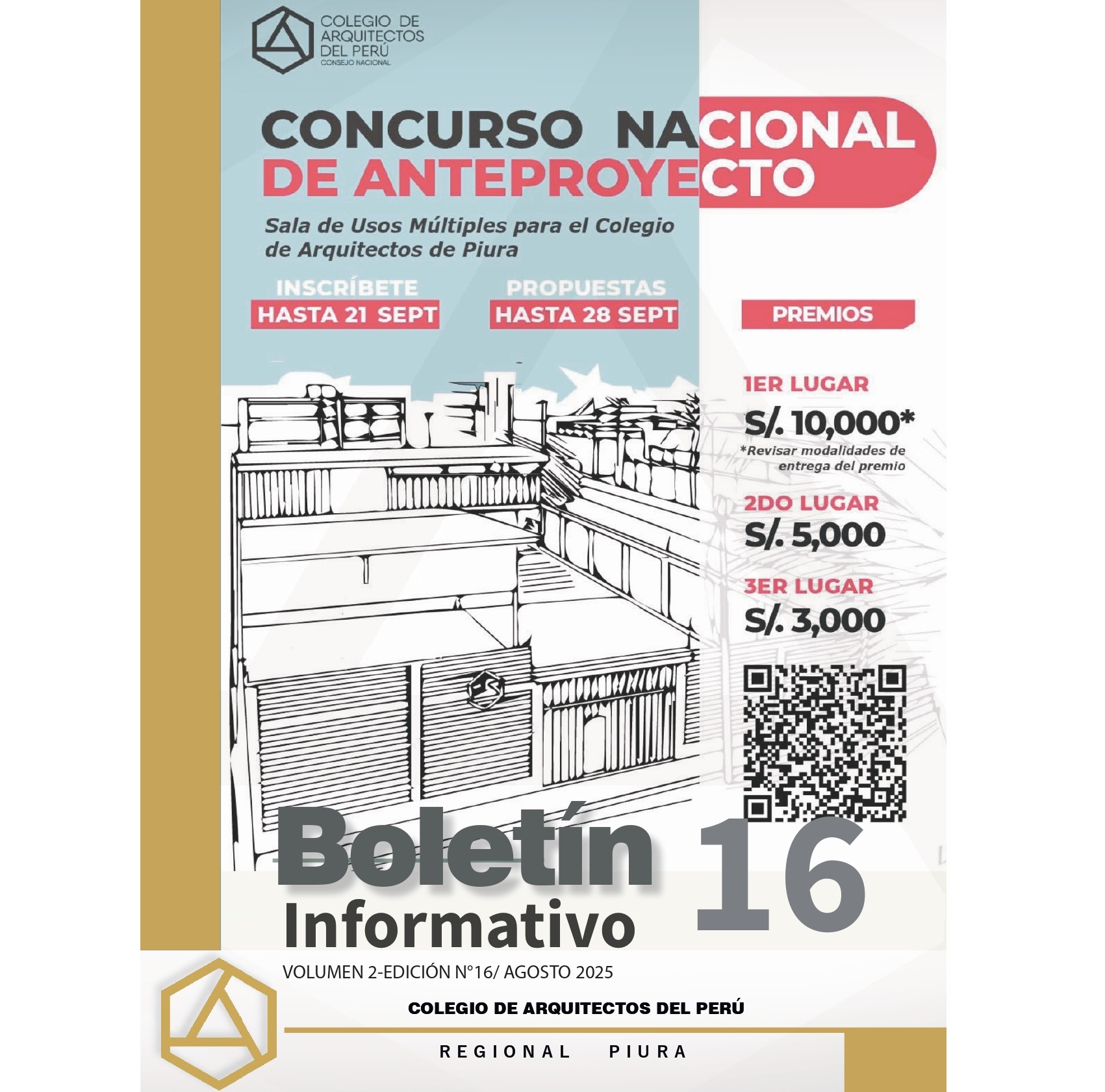 Es un honor dirigirnos a todos ustedes para compartir una nueva edición del boletín informativo del Colegio de Arquitectos del Perú – Regional Piura, el mismo que se publicará de manera mensual a partir de la fecha.